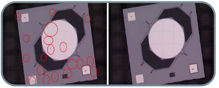 該工藝還為射頻識別(RFID)應用的微芯片封裝提供了解決方案。在組裝之前,半導體通過夾持器放置在一個特殊的彈匣中。在此過程中,機器人產(chǎn)生足夠的氣流,這可能會導致極輕的碎片從包裝中取出。為了防止這種情況,芯片被從包裝后部施加的真空壓住。為此,必須鉆一個小孔,并清除鉆孔造成的殘留物。二氧化碳雪花清洗裝置在這一特定過程中表現(xiàn)出色。