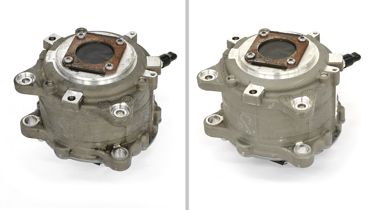 該圖片是CryoMatic二氧化碳雪清潔解決方案的展示。汽車塑料擋泥板上有明顯的灰塵,油污等雜質(zhì),液態(tài)CO2可以快速去除污垢,完全滲透到表面,不留下任何殘留物,無二次污染。整套雪花清洗系統(tǒng)是液態(tài)CO2儲罐通過增壓泵將液態(tài)CO2在多重過濾,恒溫的措施下連接到機械臂上,再通過特殊陣列式噴嘴噴出清洗零部件。CryoMatic 二氧化碳雪清潔解決方案是上海思巴克智能科技有限公司多年的干冰清洗技術(shù)的最新技術(shù)