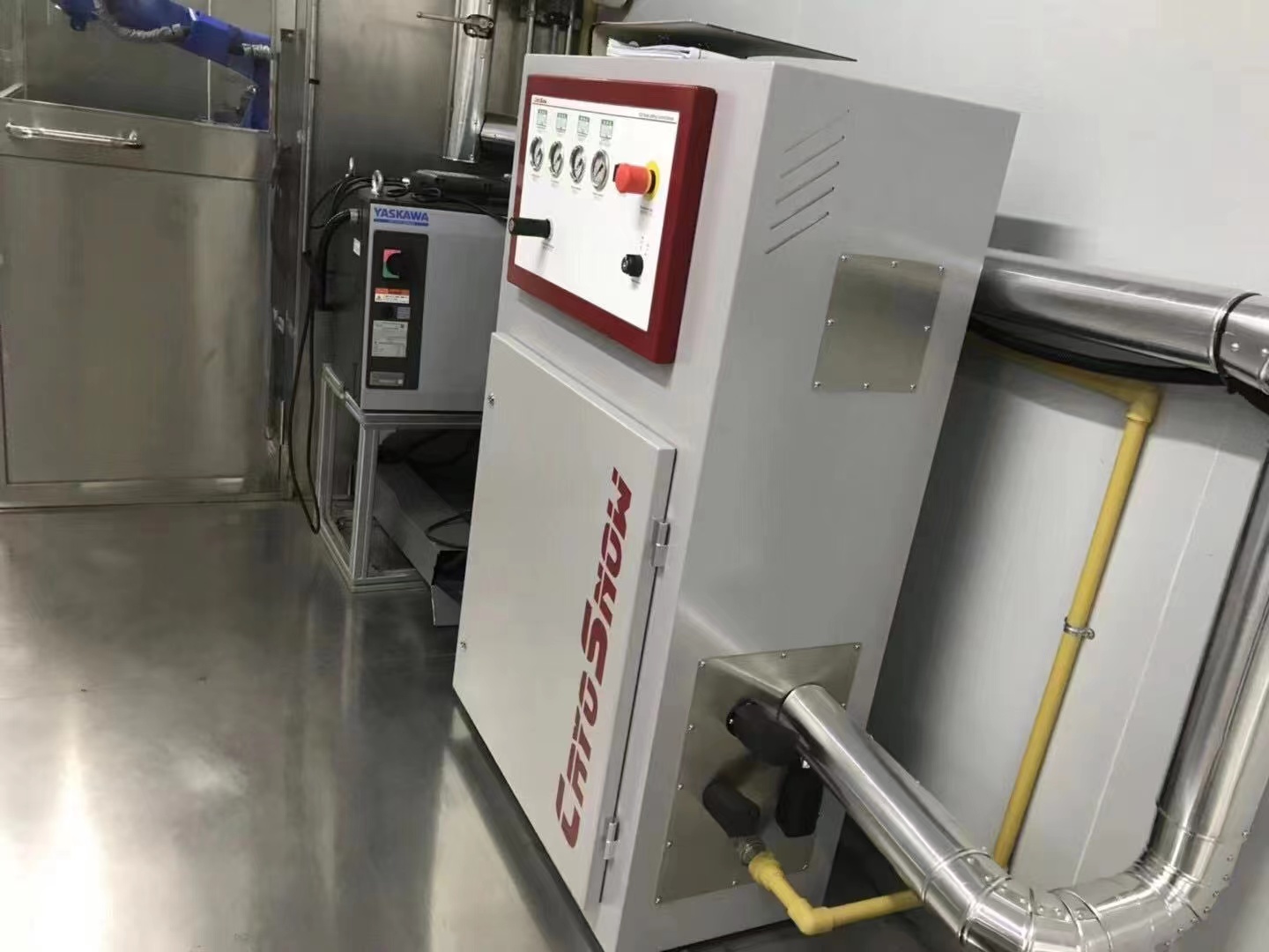 該圖片是CryoMatic二氧化碳雪清潔解決方案的展示。汽車塑料擋泥板上有明顯的灰塵,油污等雜質(zhì),液態(tài)CO2可以快速去除污垢,完全滲透到表面,不留下任何殘留物,無二次污染。整套雪花清洗系統(tǒng)是液態(tài)CO2儲罐通過增壓泵將液態(tài)CO2在多重過濾,恒溫的措施下連接到機(jī)械臂上,再通過特殊陣列式噴嘴噴出清洗零部件。CryoMatic 二氧化碳雪清潔解決方案是上海思巴克智能科技有限公司多年的干冰清洗技術(shù)的最新技術(shù)